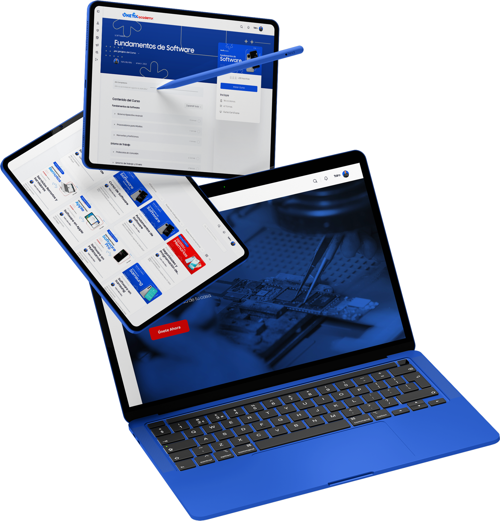 OneFix Academy es un entorno de formación on-line donde encontrarás cursos sobre diferentes áreas de aprendizaje de servicio técnico de telefonía móvil: